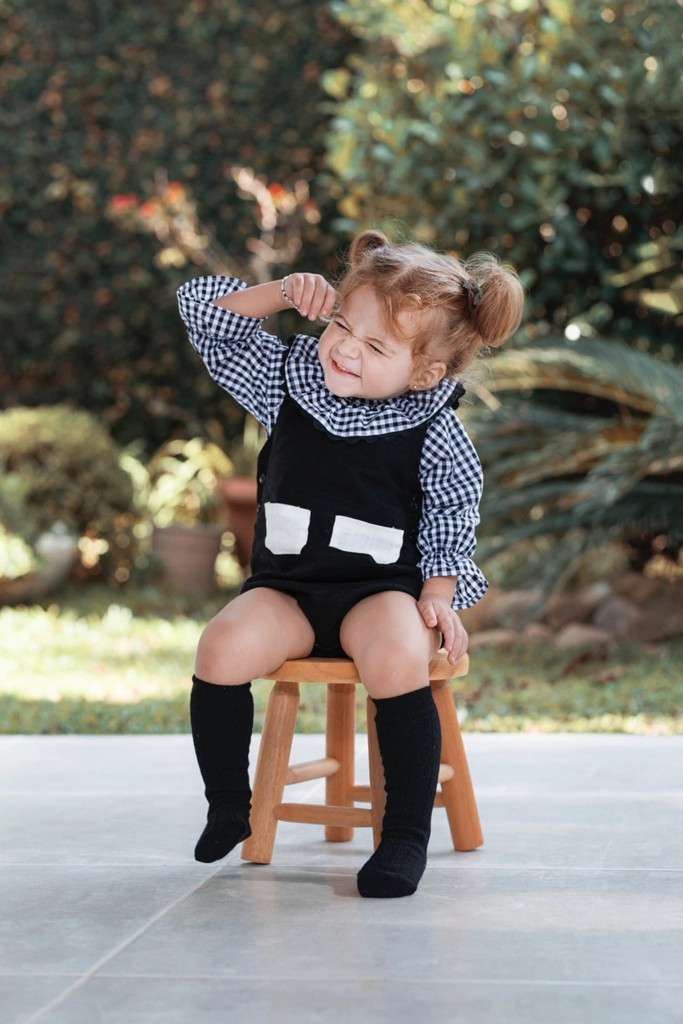 A famosa Blusa Olivia da Petit Bobô possui babadinhos no punho e na gola, deixando o lookinho do seu bebê mais estiloso! Confeccionada em tecido xadrez vichy super macio, com abotoamento nas costas para ajudar na hora de vestir, modelagem elegante e confortável. Suas combinações são infinitas, podendo ser com peças coloridas ou com o clássico preto e branco!