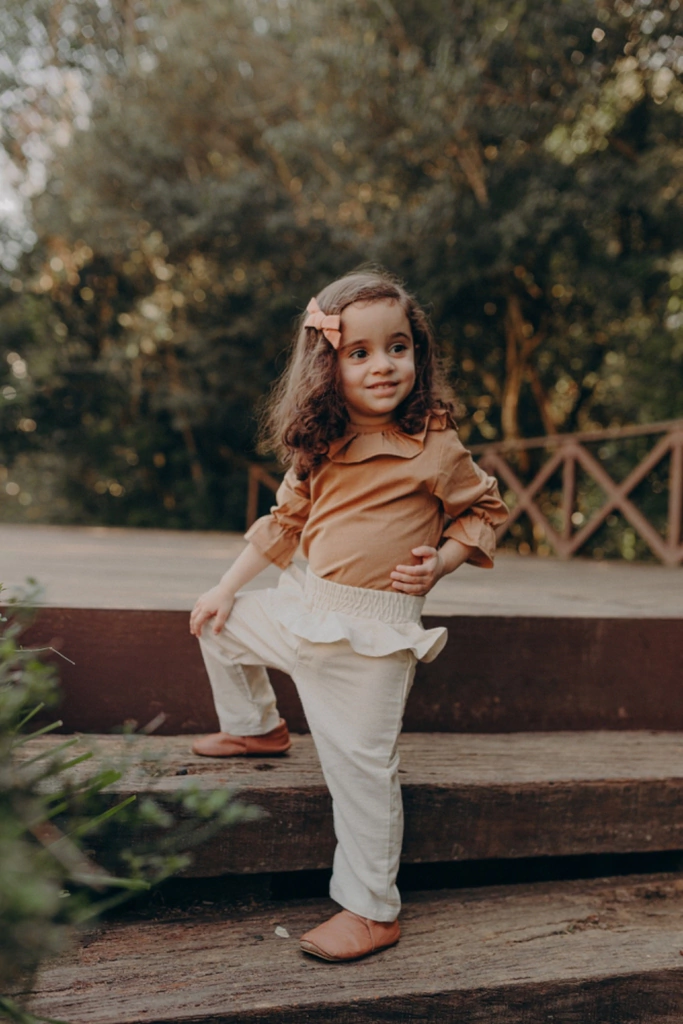 A Calça Hanna é feita a partir de matérias primas recicladas que ajudam a natureza e formam um tom cru lindo! Sua modelagem reta e com babadinhos na cintura, além de deixar o look super estiloso também é confortável. Sendo fácil de combinar e podendo ser misturada tanto com tons terrosos quanto coloridos.