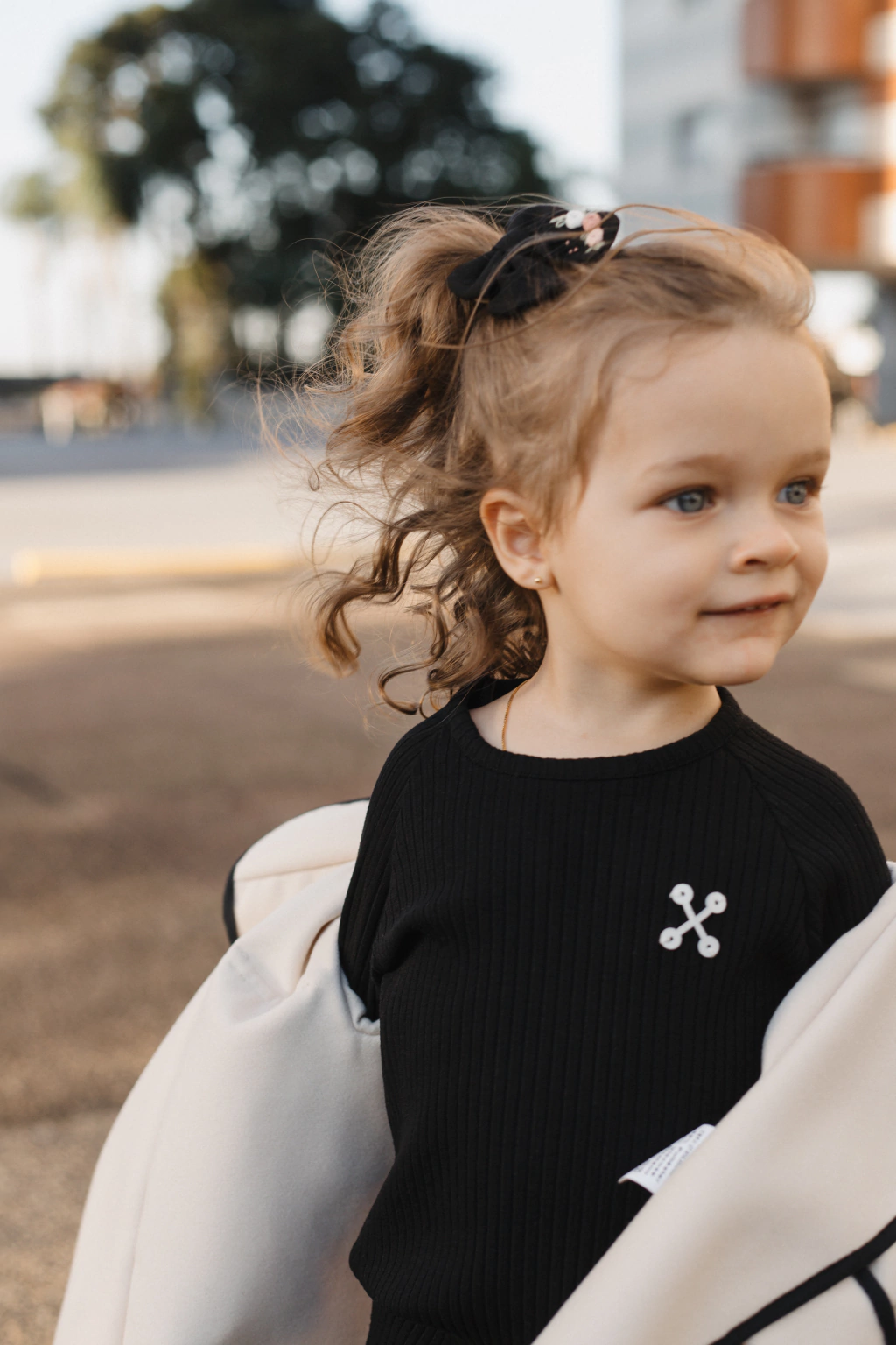 O Conjunto Tom é a simplicidade e estilo em uma roupinha só, essencial no guarda-roupa do seu bebê! Parte da nossa coleção Back to Black, ele é confeccionado em malha canelada preta, com elástico na cintura e caimento ideal no corpinho, perfeito para dias frios. Sua modelagem unissex e super confortável é ótimo para ficar em casa ou um passeio em família, além do detalhe exclusivo do símbolo da Petit Bobô. Pode ser combinado de infinitas maneiras sendo casaquinhos coloridos ou um visual monocromático com peças neutras.