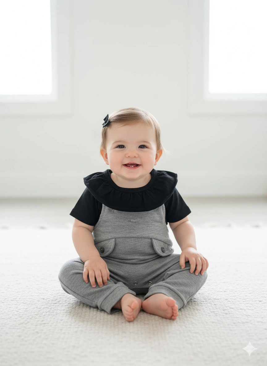 As alças com botão e o fechamento por botões entre as pernas tornam a hora de vestir muito mais fácil e rápida. Além disso, o macacão pode ser combinado perfeitamente com body e camisas, permitindo que você crie diversas produções.